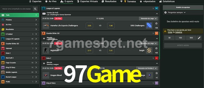 O 97Game oferece uma grande seleção de opções de apostas em e-sports com probabilidades competitivas